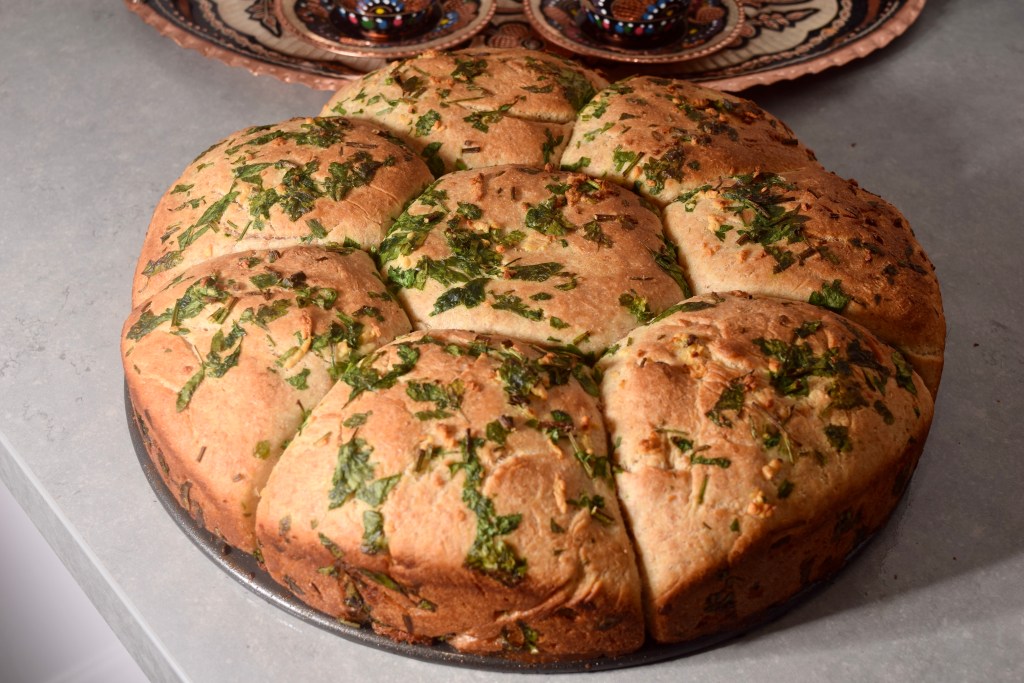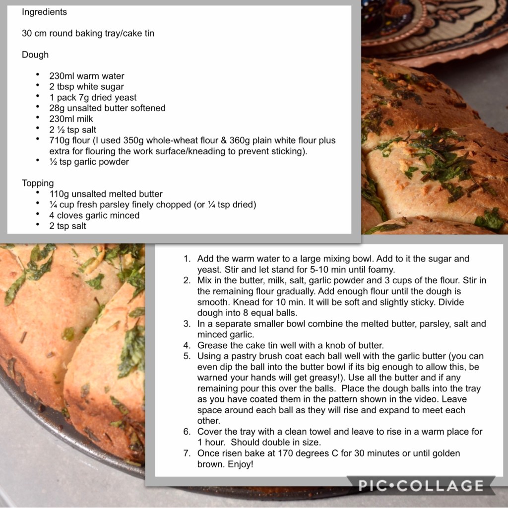 Excellent tear & share side dish to accompany your meal! Add cheddar cheese in the middle of the dough to make this cheesey garlic bread!